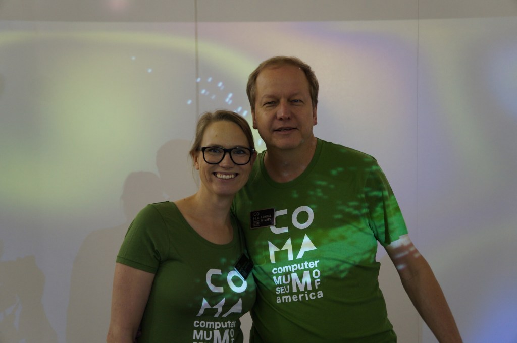 When we first got there, we had a chance to talk with the founder Lonnie Mimms (right) who was wearing a green t-shirt emblazoned with the rebranding for the space as the Computer Museum of America.