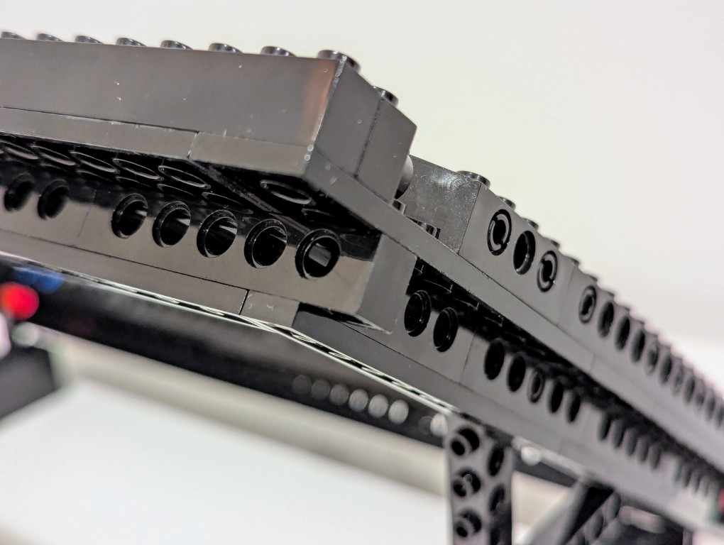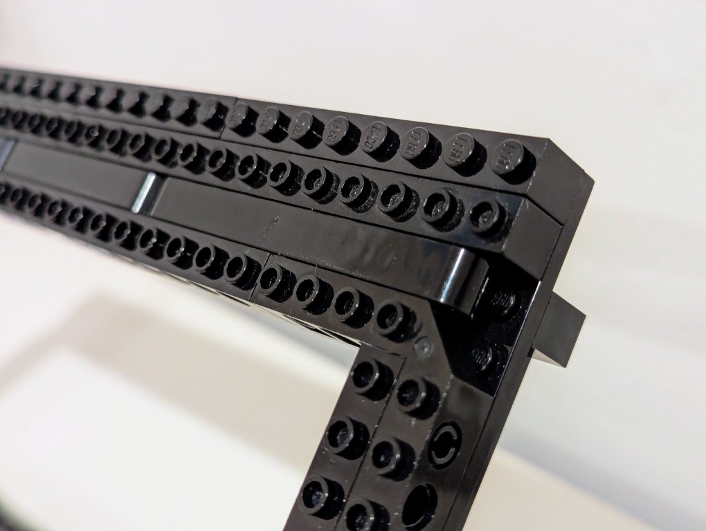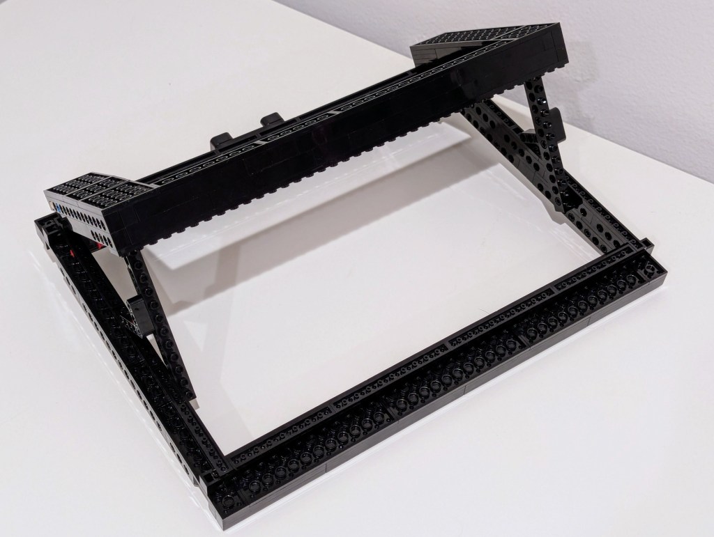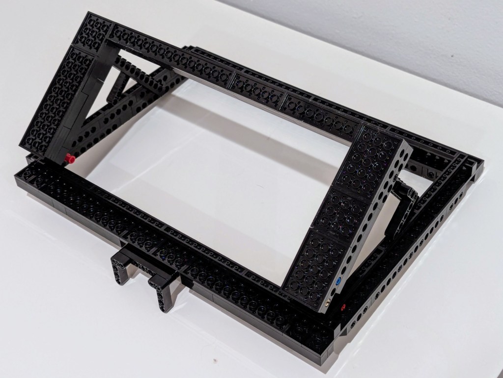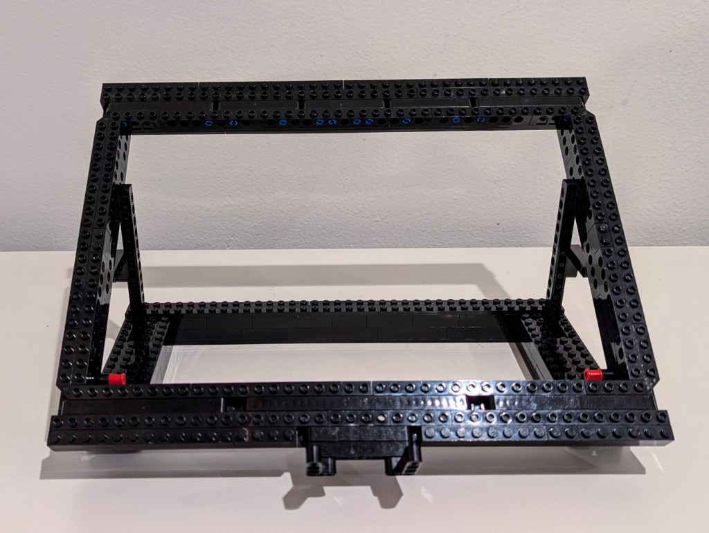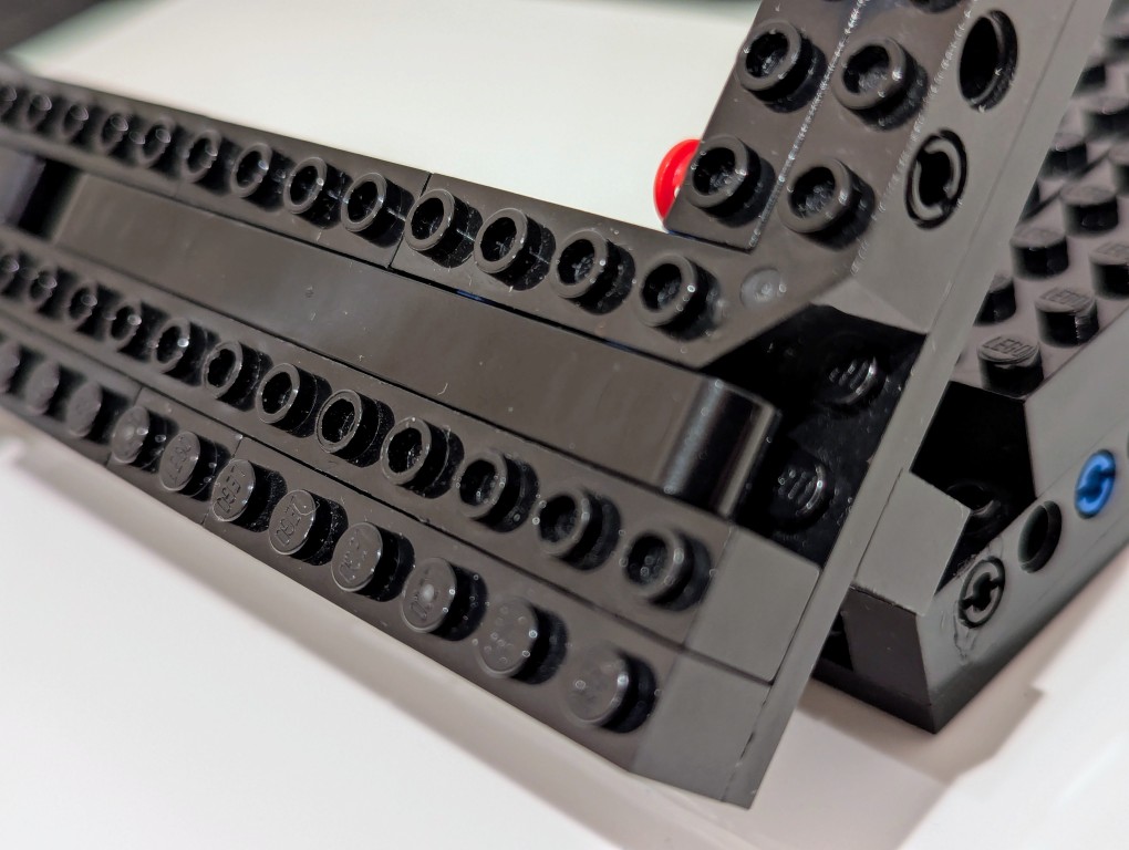 Another important element of the design was an open space beneath the laptop for maximum air flow (this laptop has an NVIDIA RTX A5000 16GB video card that I use for AI workflows). I figured that a rectangular holder for the laptop would work best and allow me to use the black Technic bricks that I had on hand in limited numbers (I have far more light and dark gray elements thanks to all of the Star Wars sets I’ve built over the years).