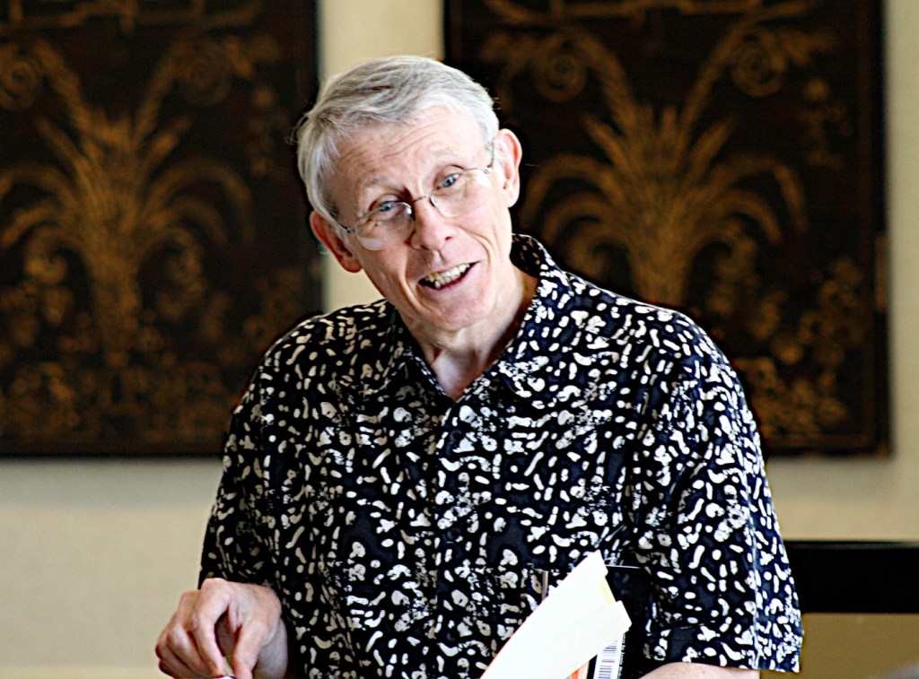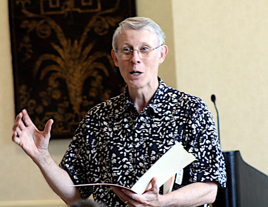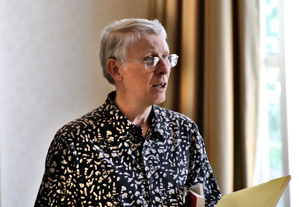 I was sad to learn today that Michael Bishop, the southern science fiction writer, had passed away about a month ago on Nov. 13 in LaGrange, Georgia, a small town near the Alabama border–north of Columbus and southwest of Atlanta. I had the honor of moderating a discussion panel called, “Engineering the Future and Southern Fried Science Fiction and Fantasy,” at the 2009 Science Fiction Research Association (SFRA) Conference in Atlanta that featured Mr. Bishop alongside F. Brett Cox, Paul Di Filippo, Andy Duncan, Kathleen Ann Goonan, Jack McDevitt, and Warren Rochelle. It was a lively discussion and I remember him being friendly and kind throughout the event where he was the Guest of Honor. The pictures above and below are from his GoH reading on Friday, June 12.