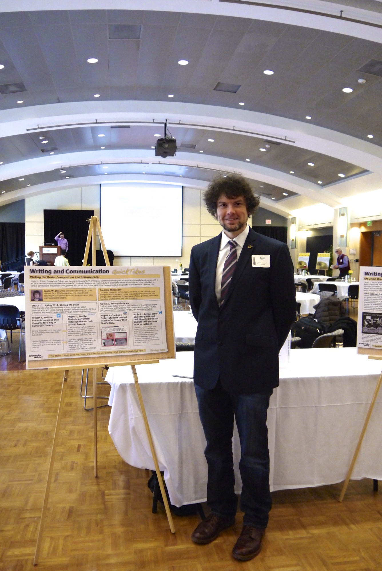 A number of Brittain Fellows had their posters on display and we were there in force to talk about our teaching of communication as rhetorical and multimodal (WOVEN = written, oral, visual, electronic, and nonverbal). I presented my poster on, “Writing the Brain: Composition and Neuroscience” [you may view it here–with thanks to my student Jinming Hu for giving me permission to share his work from class].