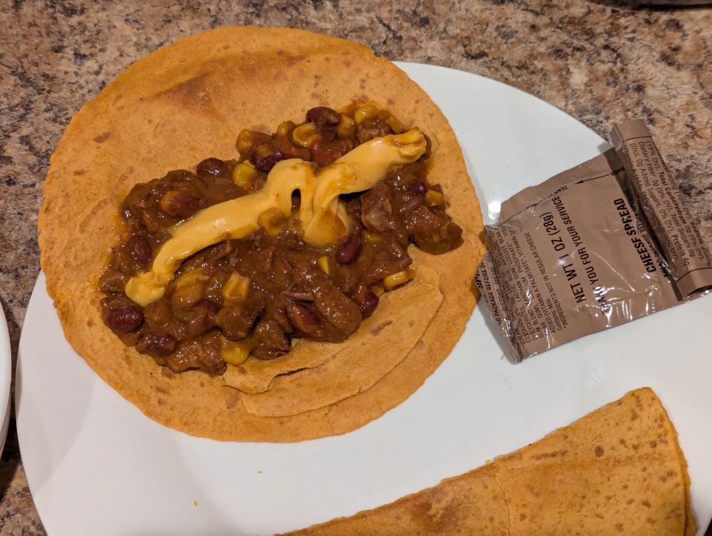I tried the rice and beans before adding the crushed red pepper, and I liked the flavor as is and saved the pepper for later. I didn’t try any of the sides of this MRE, because I also brought some dessert from home. I’ll mix-and-match the sides with other MREs in the future.