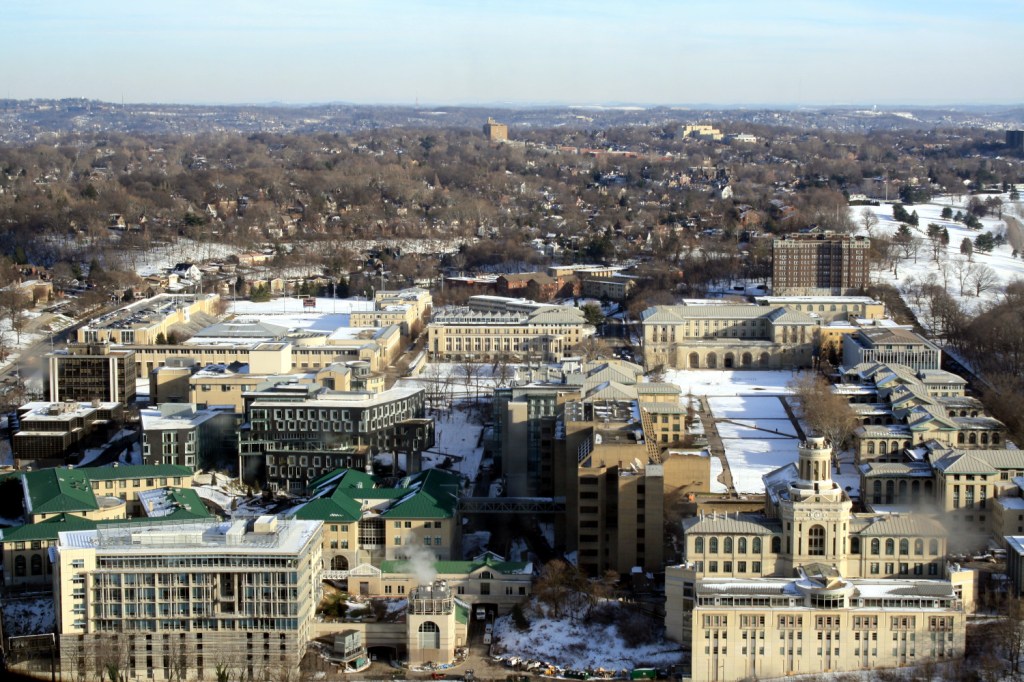 From an upper floor, you can look east to see Carnegie Mellon University.