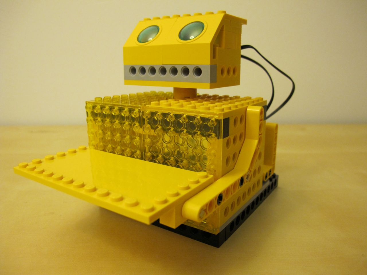After the exam, we began what I called an SF debriefing with Lego. I framed this end of semester activity by having them think about WOVEN (written, oral, visual, electronic, and nonverbal) modes of communication. Then, I discussed the importance of one aspect of nonverbal communication: haptics. In the haptic mode, we touch, we build, and we visualize objects. It is an insanely important and often overlooked way in which our brains think, learn, and communicate with others. I told them that this activity was meant to allow them to think about and express some image or object from SF–either discussed in the class or not–that they liked or thought significant. To facilitate their work with haptics, I brought two bins full of Legos–some acquired from the local Lego Store and some from my secret stash. I told them to use up to 40 bricks/elements to build their model. After completing it, they would have a chance to hold it up and tell the class about it, and if they choose to do so, they could take it home as a gift and a memento of the class.