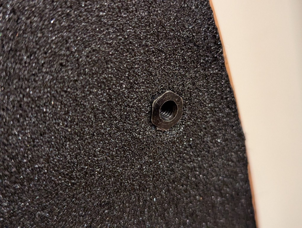 Since we didn’t have 3/8″ lock washers, we opted to use two nuts on each bolt to lock them in place.
