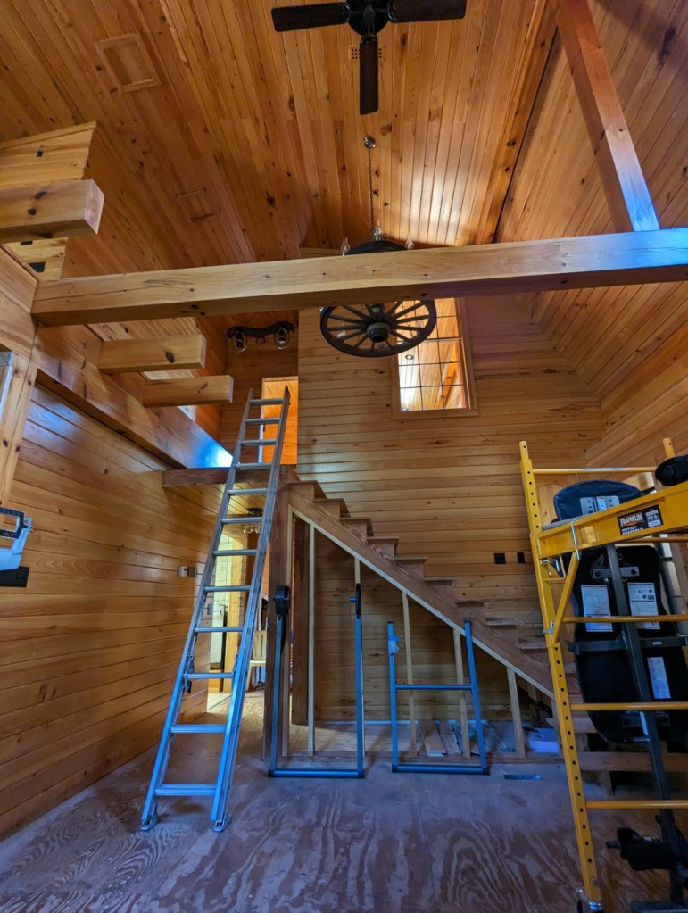 Eventually, the new cypress stair treads will go on the currently roughed-in stairs between the first and second floors.