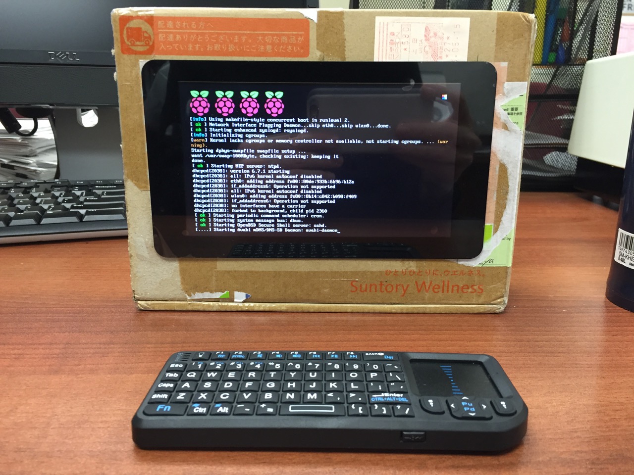 This guide demonstrates how to install Raspbian on a Raspberry Pi 2, Model B, connect the Raspberry Pi to a 7″ Touchscreen LCD, and integrate the computer and touchscreen in a cardboard box (which doubles as a case and storage for battery, keyboard, and cables).