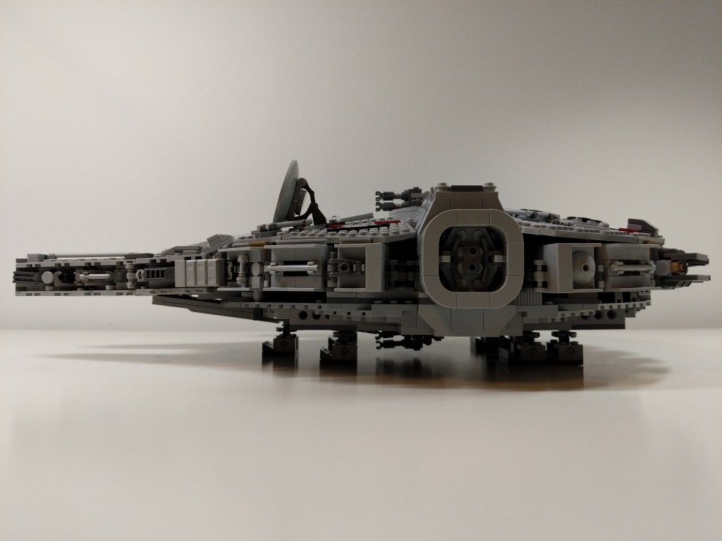 I added greebling, blast marks, and other details to make the Falcon appear as close to the cinematic model as I could giving the low fidelity and resolution of LEGO at this scale.