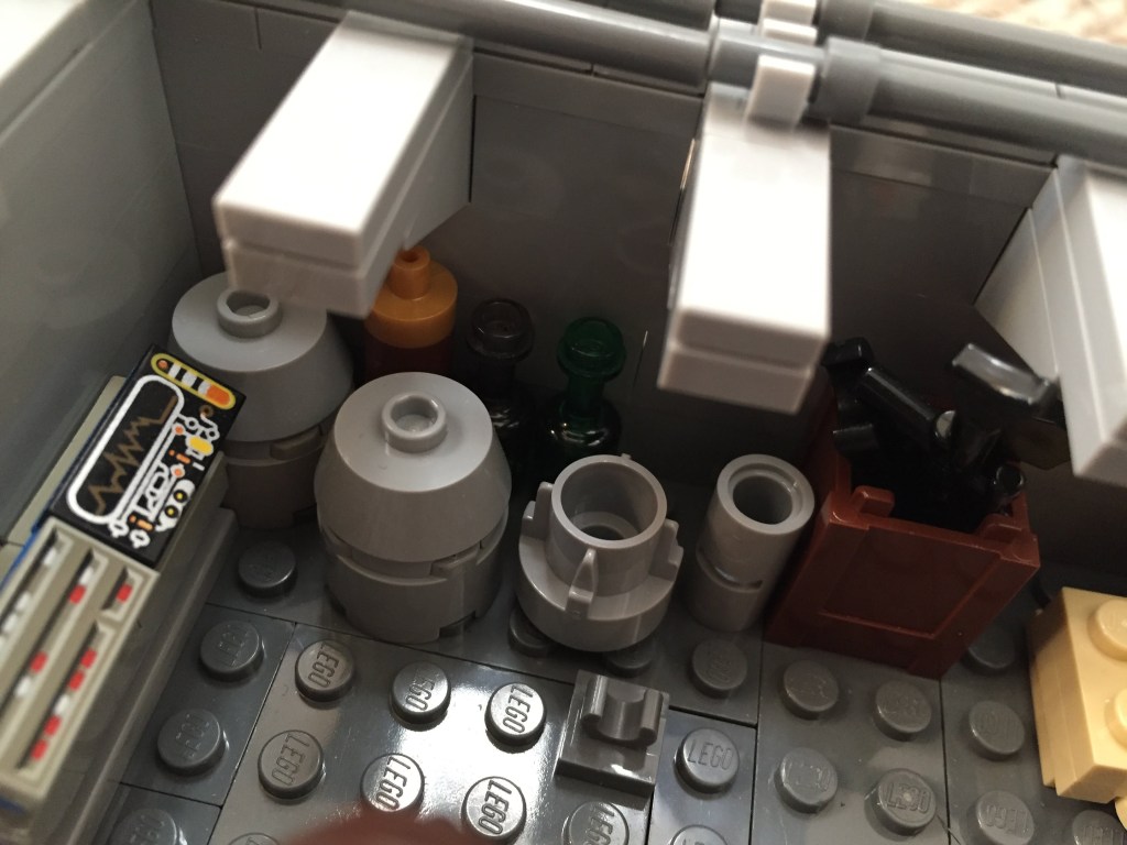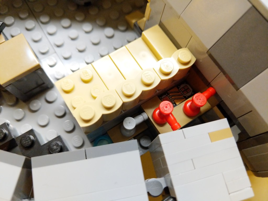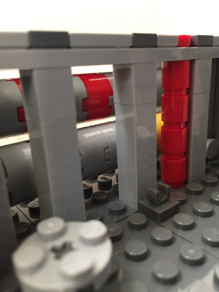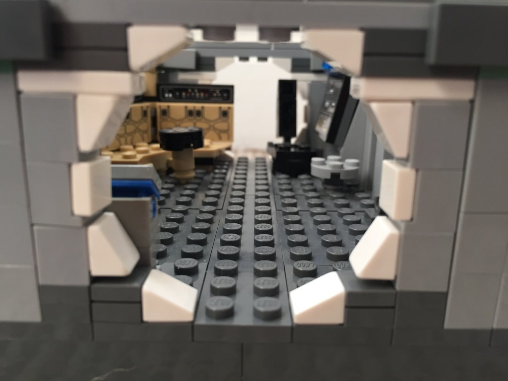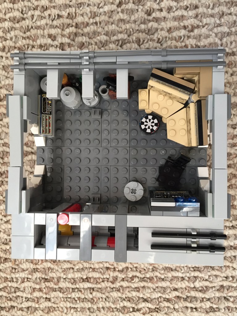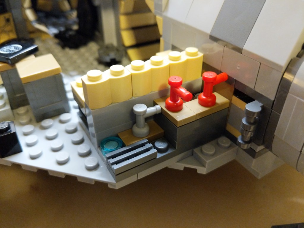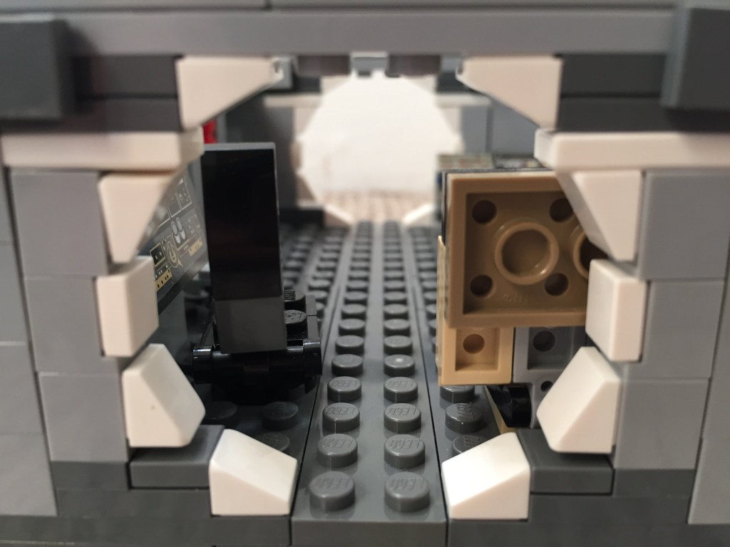 I built this 18 x 18 stud diorama of the Millennium Falcon’s main hold that depicts when Han Solo and Chewbacca get to talk with Rey, Finn, and BB-8 in The Force Awakens (2015). I made it sometime before The Last Jedi (2017) premiered. It isn’t 100% accurate due to my wanting the round passage way to create flow for the model (they should be on perpendicular walls). Nevertheless, I fit in important elements of the scene: the seating for the Dejarik table, the Nav computer, the pipes and tanks, Ben Kenobi’s seat while Luke is training, the in-floor repair access, and other equipment seen in the background of the Falcon in the various Star Wars films.
