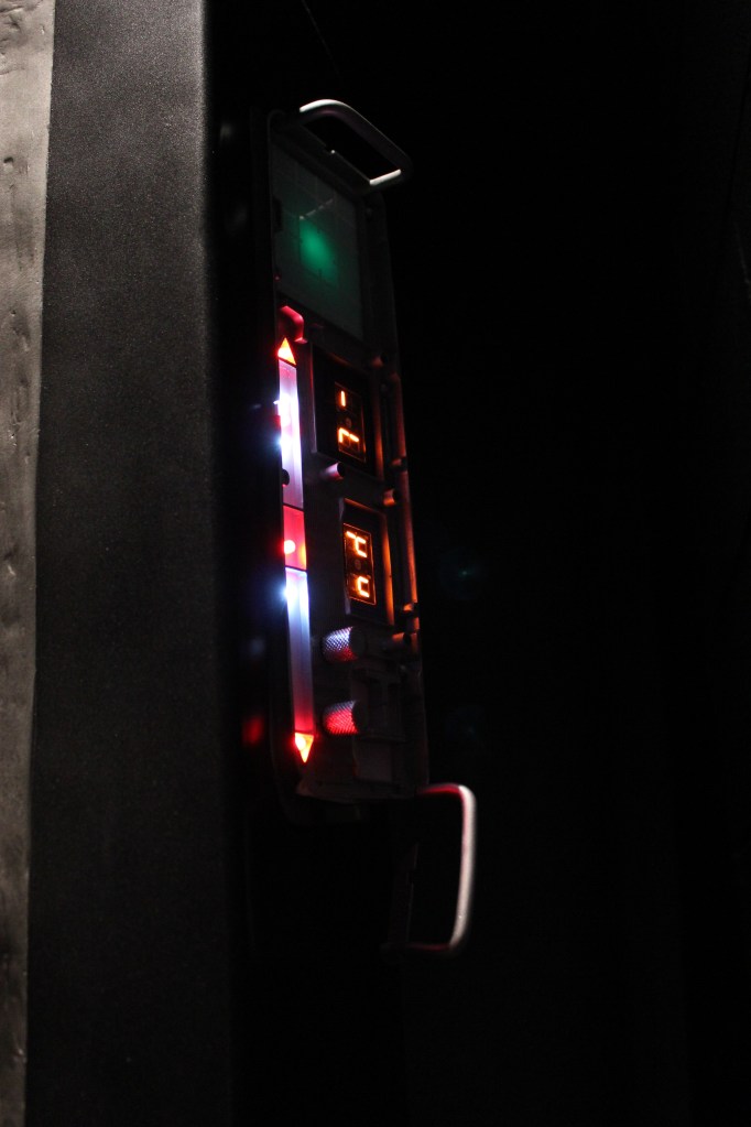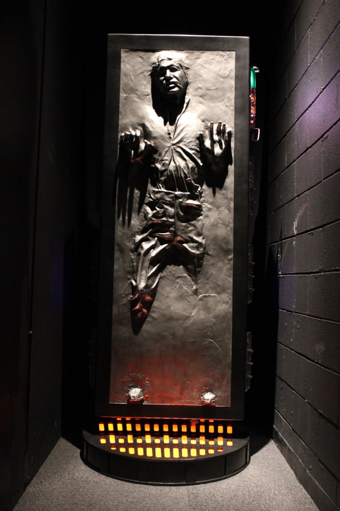 Star Wars the Exhibition was held in an old building with fine wood detailing and fireplaces throughout the smaller rooms. It was tight in places and open in others. It was dark and the lighting produced shadows and a variety of dramatic colors, which created challenges for my camera. As you’ll see in the photos, it had some amazing life-size artifacts from The Phantom Menace (1999).
