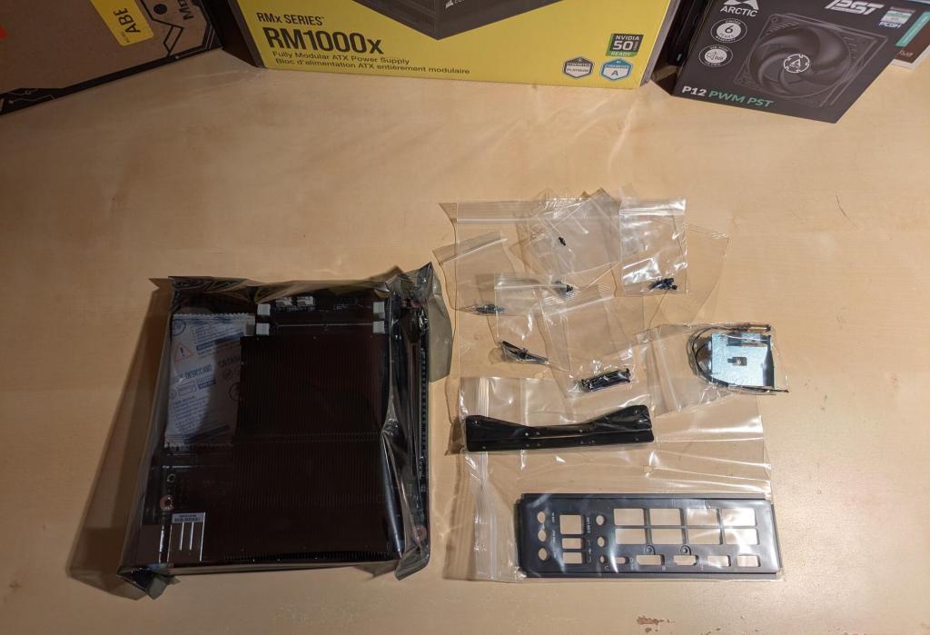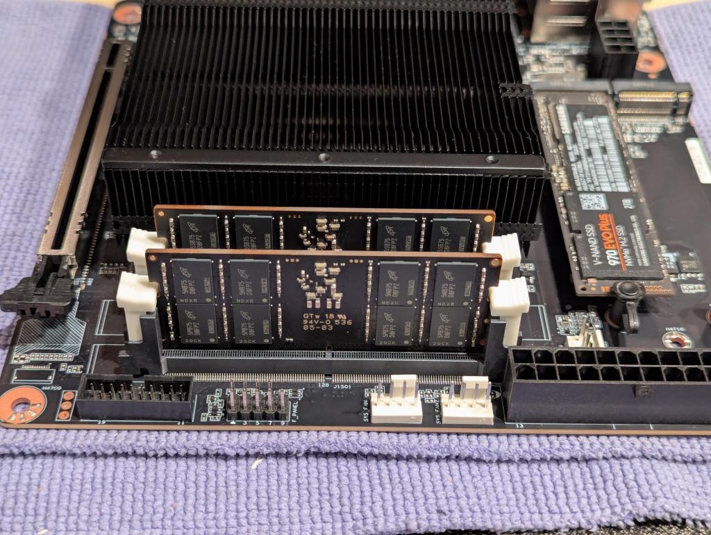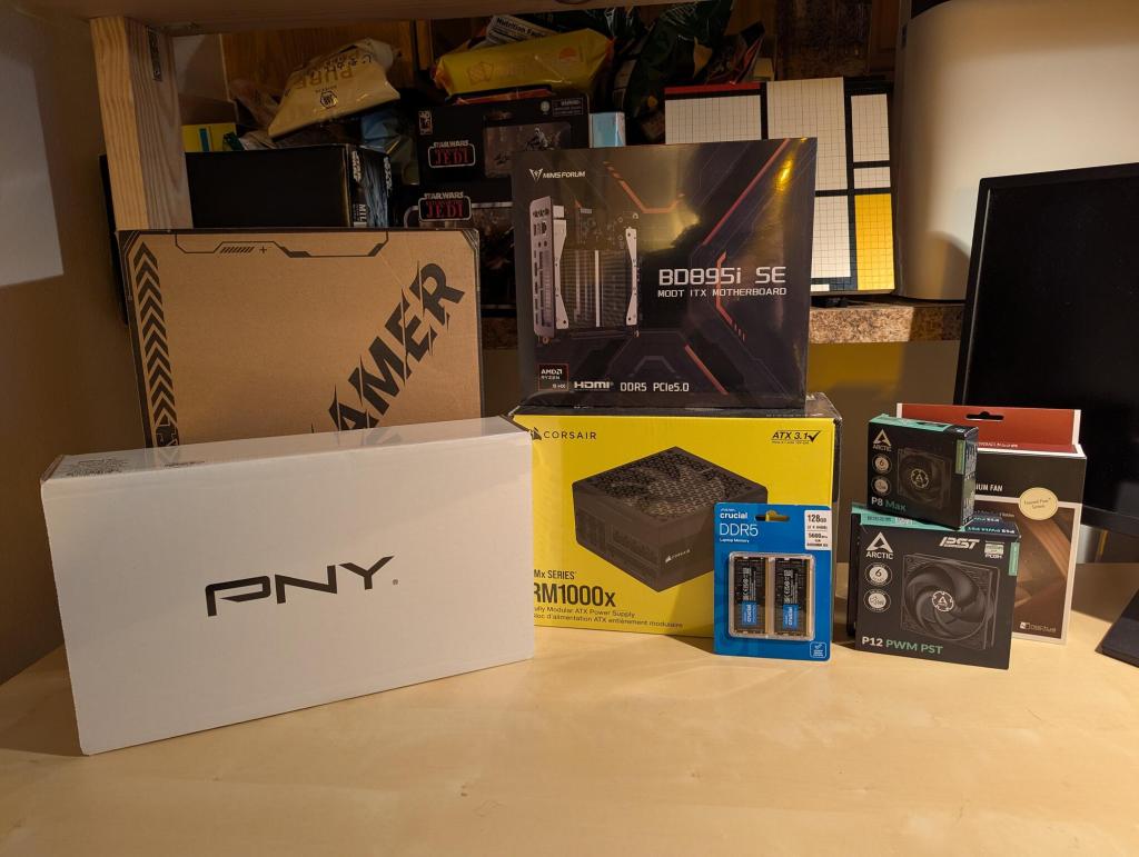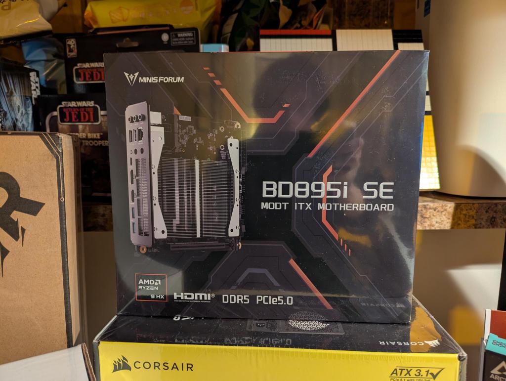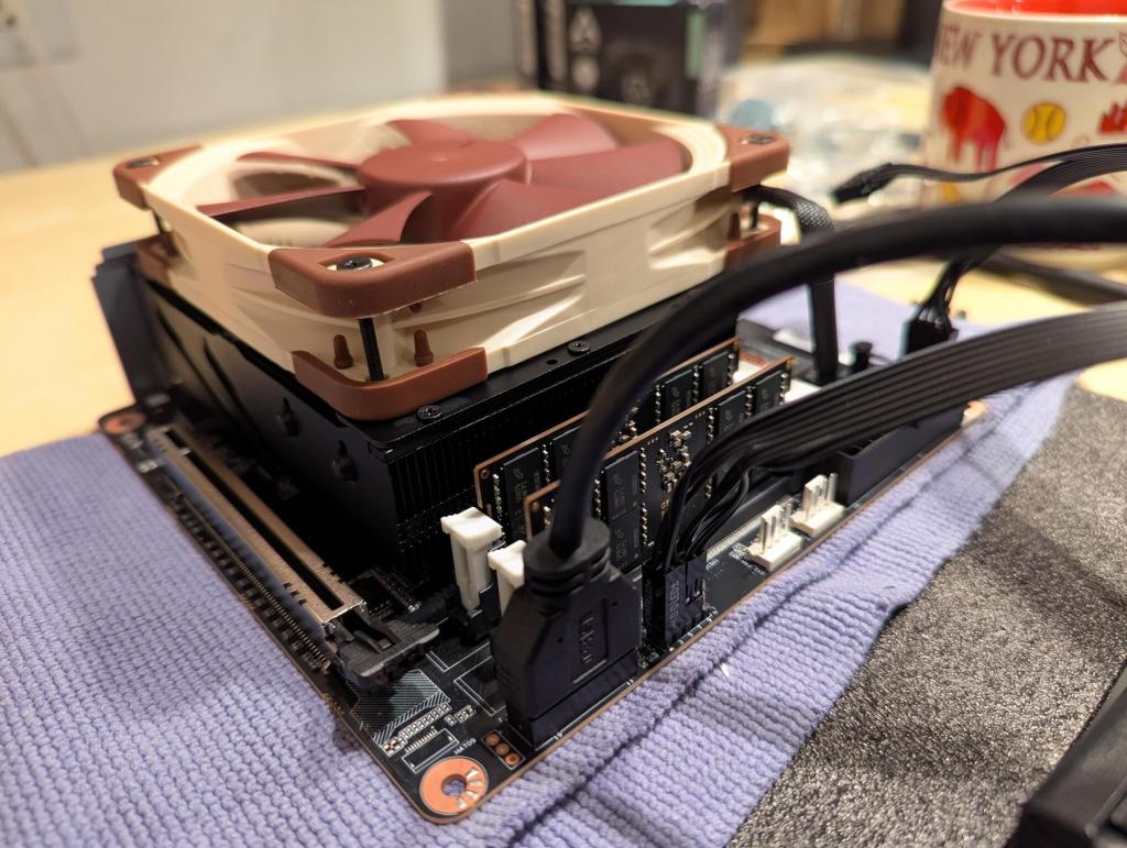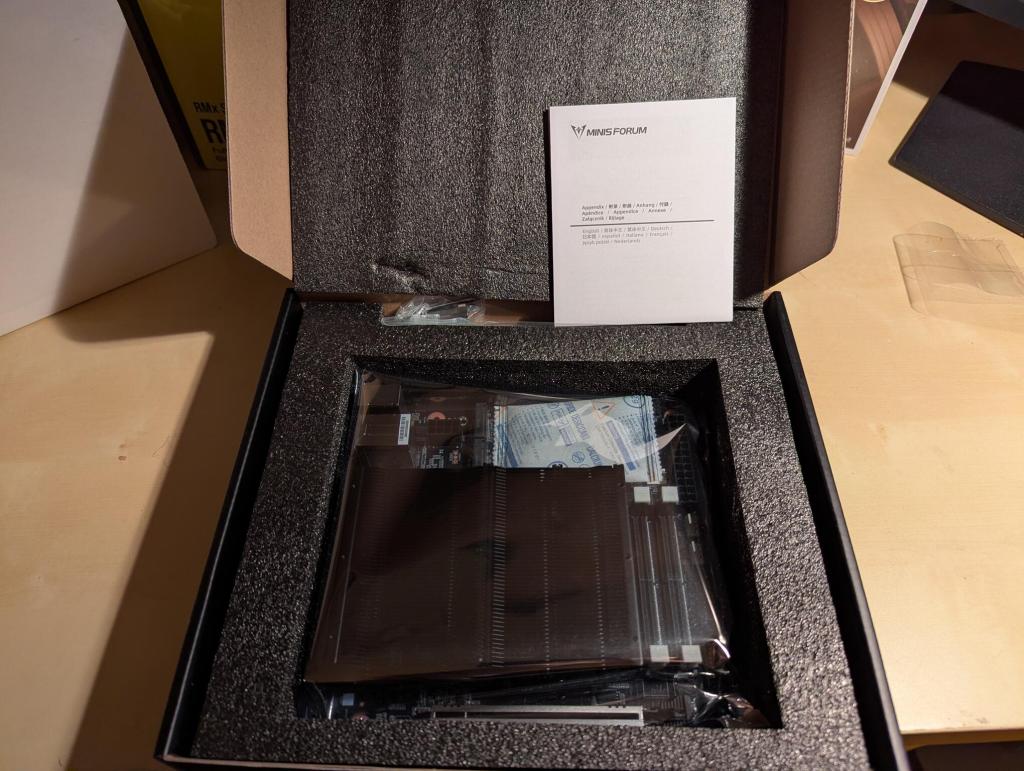 When I began researching this build, the price of RAM and video cards began to rocket into the stratosphere. I considered keeping the old workstation’s motherboard and CPU, but swap out the 64GB of RAM for a matched pair totaling 128GB DDR5 RAM. But, the price of desktop DDR5 versus laptop RAM got me to thinking about an alternative option made by Minisforum–a mini-itx motherboard paired with a laptop processor and laptop SO-DIMM DDR5 RAM slots. So, I decided to part out and sell off the entire old workstation and build the new one from scratch. This is what I purchased: