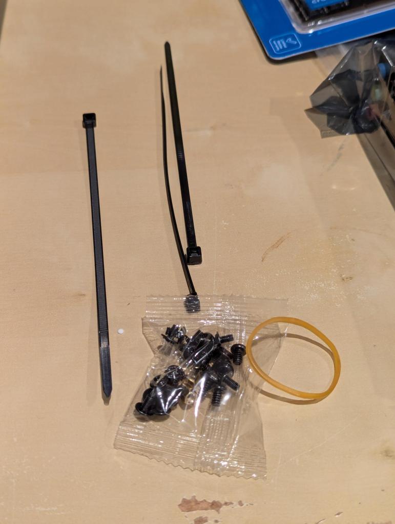 It included all the hardware needed to install the motherboard and tie straps for cable management.