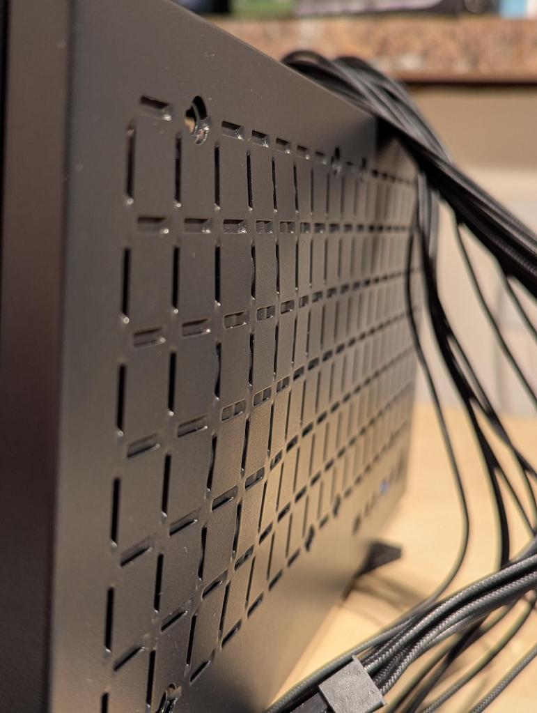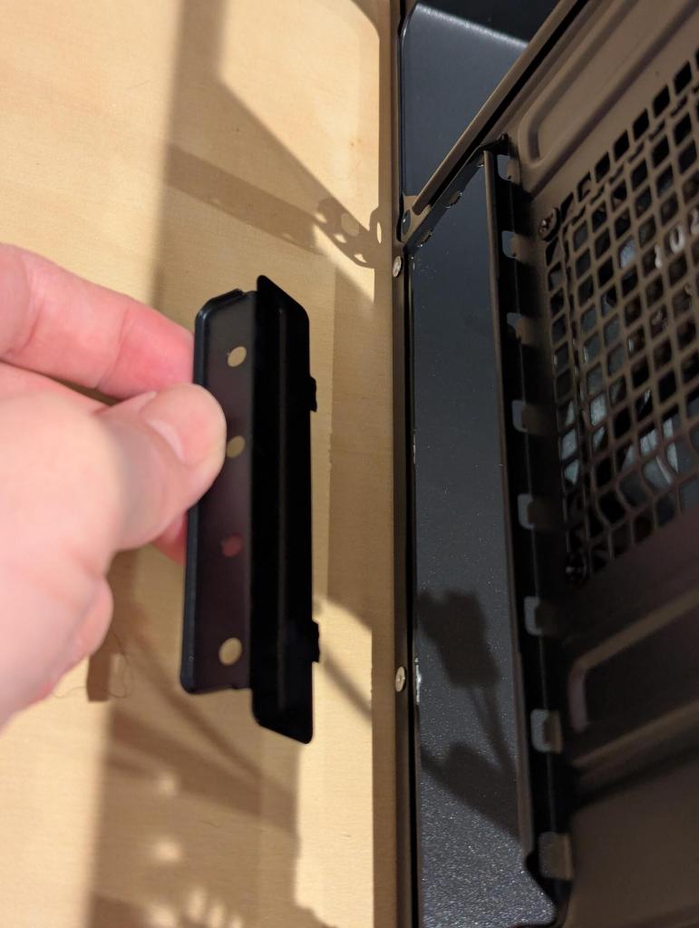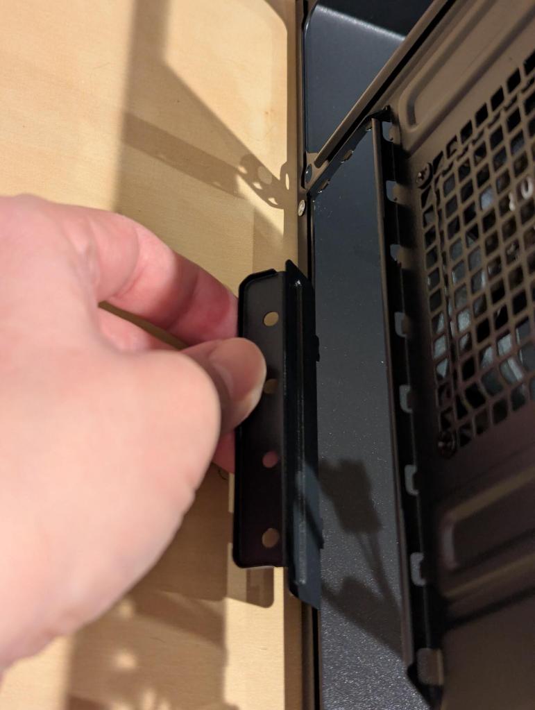 Before installing the motherboard, there is a metal L-shaped plate that needs to be removed from the opening where the motherboard’s ports are exposed at the rear of the case. Bending this piece back and forth a few times makes it snap off. It’s purpose is to secure the expansion cards, but despite bending it and the case, I couldn’t get it to line up correctly without putting too much stress on the installed video card, so I left it off.