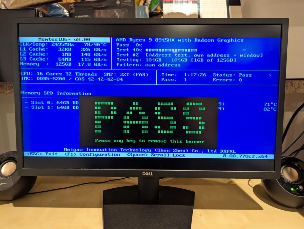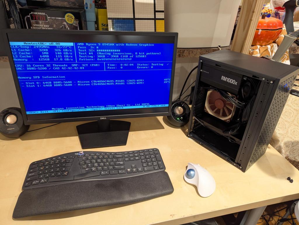 The first order of business was verifying the system’s 128GB DDR5 RAM with memtest86+. Thankfully, it passed!