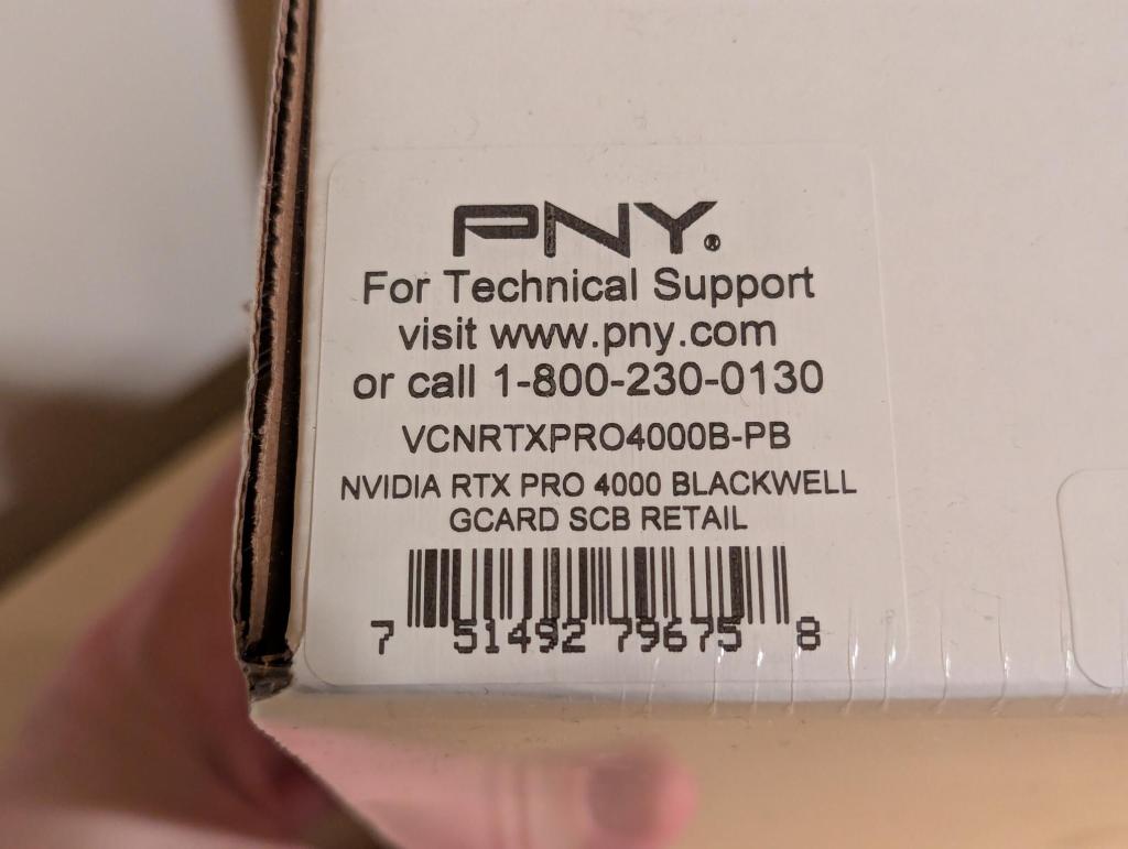 The last part to install was the PNY Nvidia RTX 4000 Pro Blackwell video card.