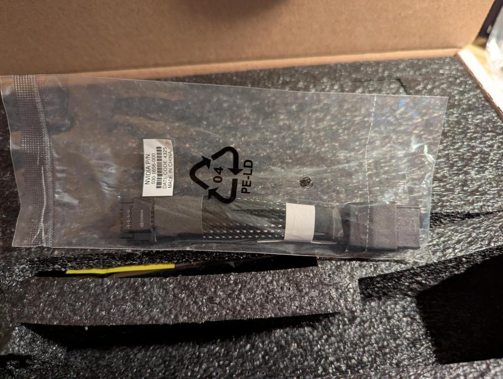 It comes with a 2 x PCIe power to 12v 2 x 6 connector adapter, which I didn’t need to use thanks to the new Corsair PSU.